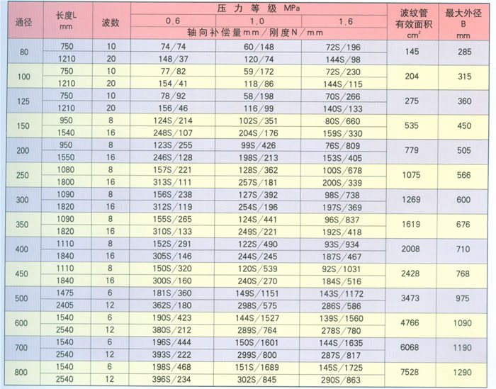 該補(bǔ)償器的波紋管二端與外筒、內(nèi)筒相連,波紋管受外壓作用,波數(shù)較多,因此它能吸收較大的軸向位移。